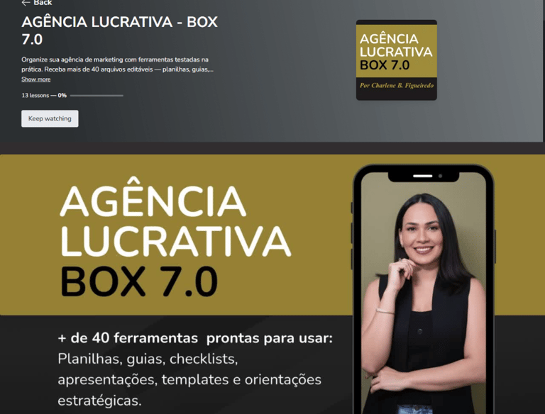 Como vou receber o Box 7.0 - Agência Lucrativa? → Após a compra, seu acesso chega ao seu e‑mail em poucos minutos.